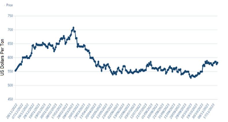 - An estimated 6% year-on-year increase in the average silver price is projected, reaching USD 23.10 in 2023. Notably, until November 7, prices have already shown an 8% year-on-year growth. Looking ahead, Metals Focus maintains a stance in favor of a sustained upward trajectory in silver prices, particularly concerning expectations around U.S. interest rates, aligning with the viewpoint of prolonged elevated rates. However, this financial backdrop is less favorable for non-yielding assets like silver. Additionally, the investment attractiveness of silver as an industrial commodity might suffer due to waning confidence in the wake of a decelerating Chinese economy. Consequently, a cautious outlook for silver prices should be adopted soon, extending into much of 2024.