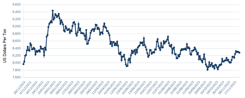 - Copper price is at the same level over the past 12 months
