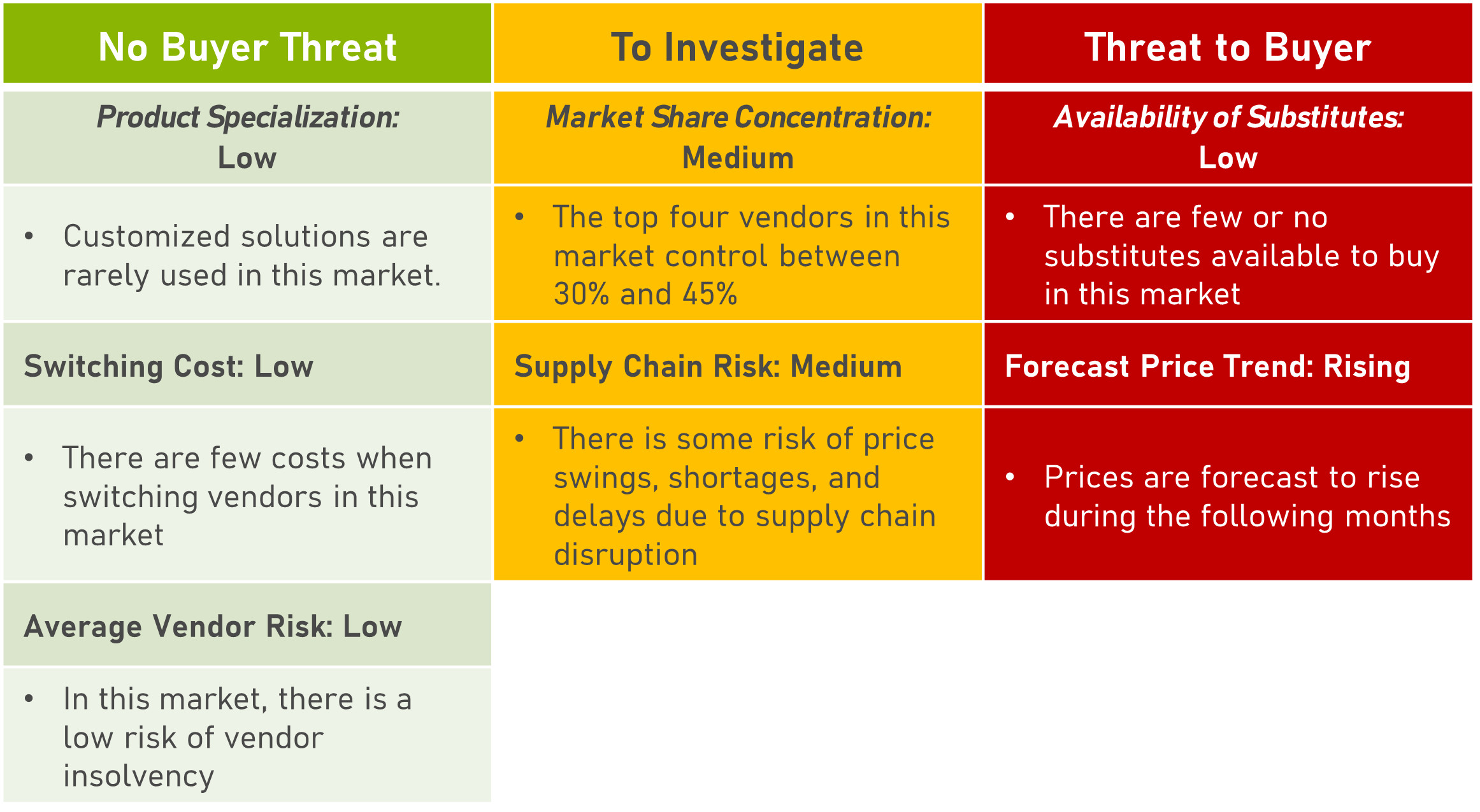 - Despite a moderate supply chain risk, market suppliers appear relatively insulated from commodity and input price shocks. This resilience translates to a low level of financial trouble for vendors, enhancing their capacity to withstand any economic challenges arising from disruptions in the supply chain.