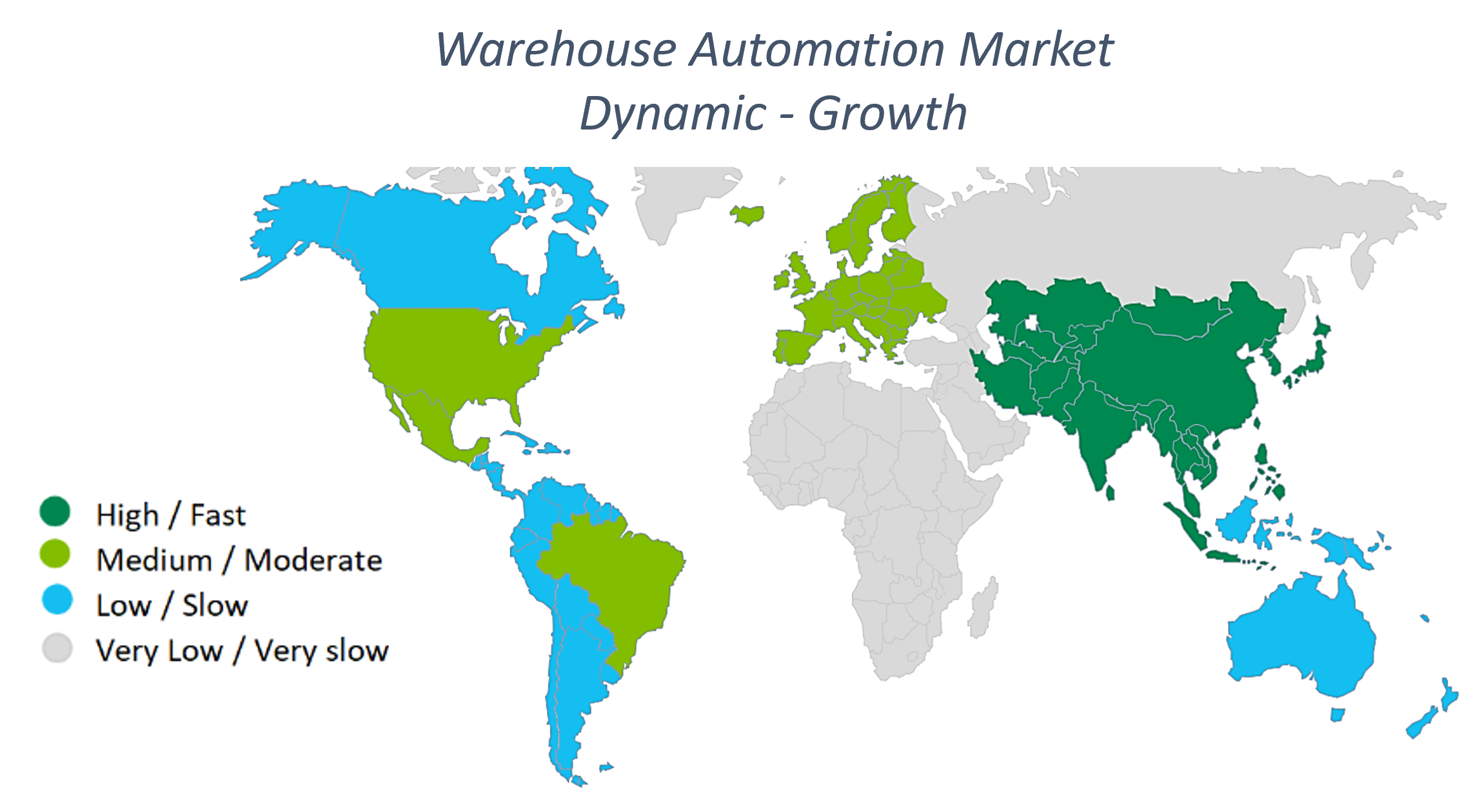 - As of this writing, the APAC region owns the largest market share in the Warehouse Robotics market and is predicted to grow fastest among the regions in the next three to five years. South Korea and Japan are very strong in offering solutions; China is eager to adopt new technologies.