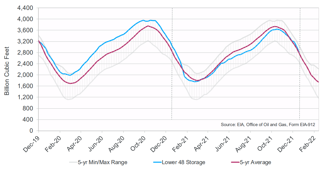 - Working gas in underground storage levels against the 5-year average. The graph below represents this trend.