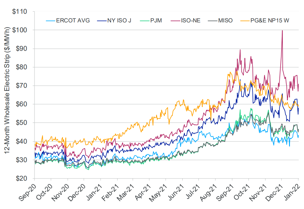 - This graph shows the historic trading range of the electric around the-clock (ATC) 12-month rolling strip by Independent System Operator (ISO) region as of the market close on May 20, 2022.