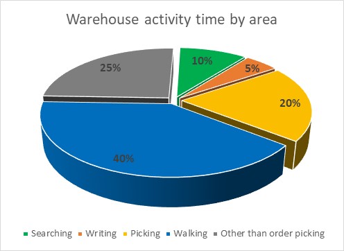 - Majority of the activities are linked to order picking-related processes, but it is eye-opening that 75% of these activities are non-value add types of activities. This area is the most labor-intensive part of warehousing and therefore, ideal for automation.