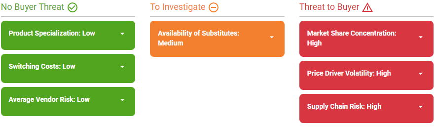 - Quick Compare: 15% power reduction on Forecast Price Trend indicator; 30% increase on Price Driver Volatility indicator. Supply chain risk increases significantly—by a factor of 3—as compared to the indicator from the previous quarter