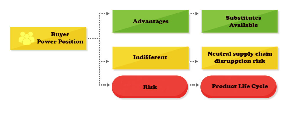 - There is moderate availability of substitutes, high service specialization & moderate buying lead time.