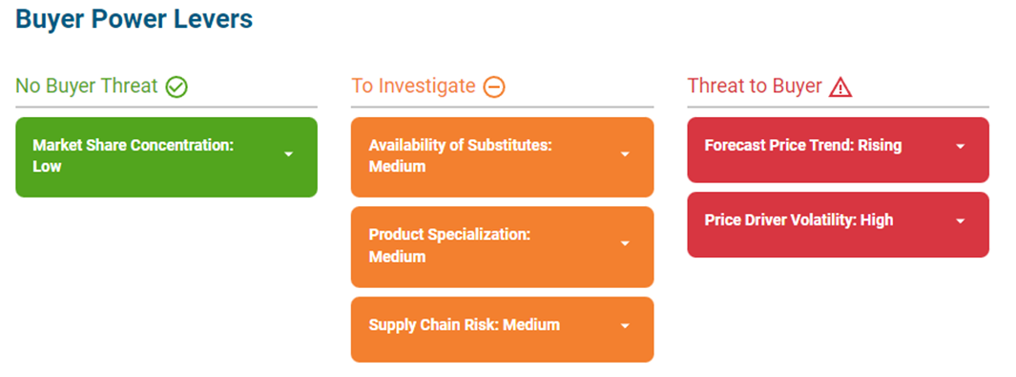 - The high availability of substitutes and alternative products empowers buyers by allowing leverage in negotiations with market providers.