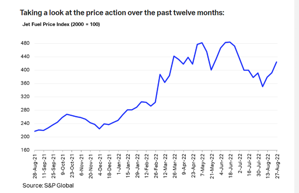 - The increase in jet fuel prices represents a major challenge as this cost typically accounts for 20% to 25% of total operational costs. The jet fuel price rose by more than 70% during the first 6 months of 2022, marking one of the steepest increases since at least 2002 and causing unprecedented pressure in terms of cost management for the airline industry. Source IATA