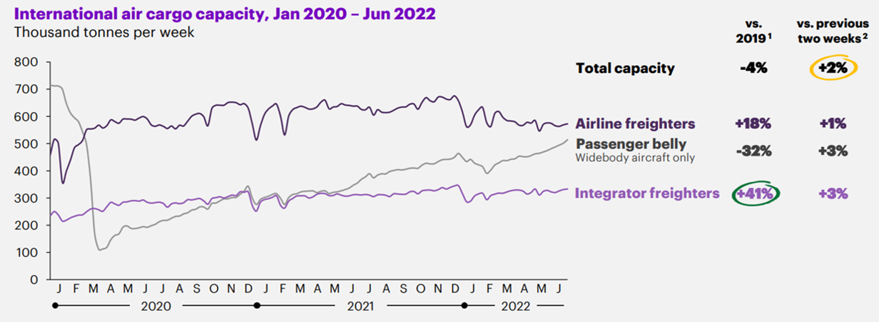 - The war in Ukraine has, however, reclaimed some of the additional capacity following Western sanctions removing Russian all-cargo carriers from circulation.