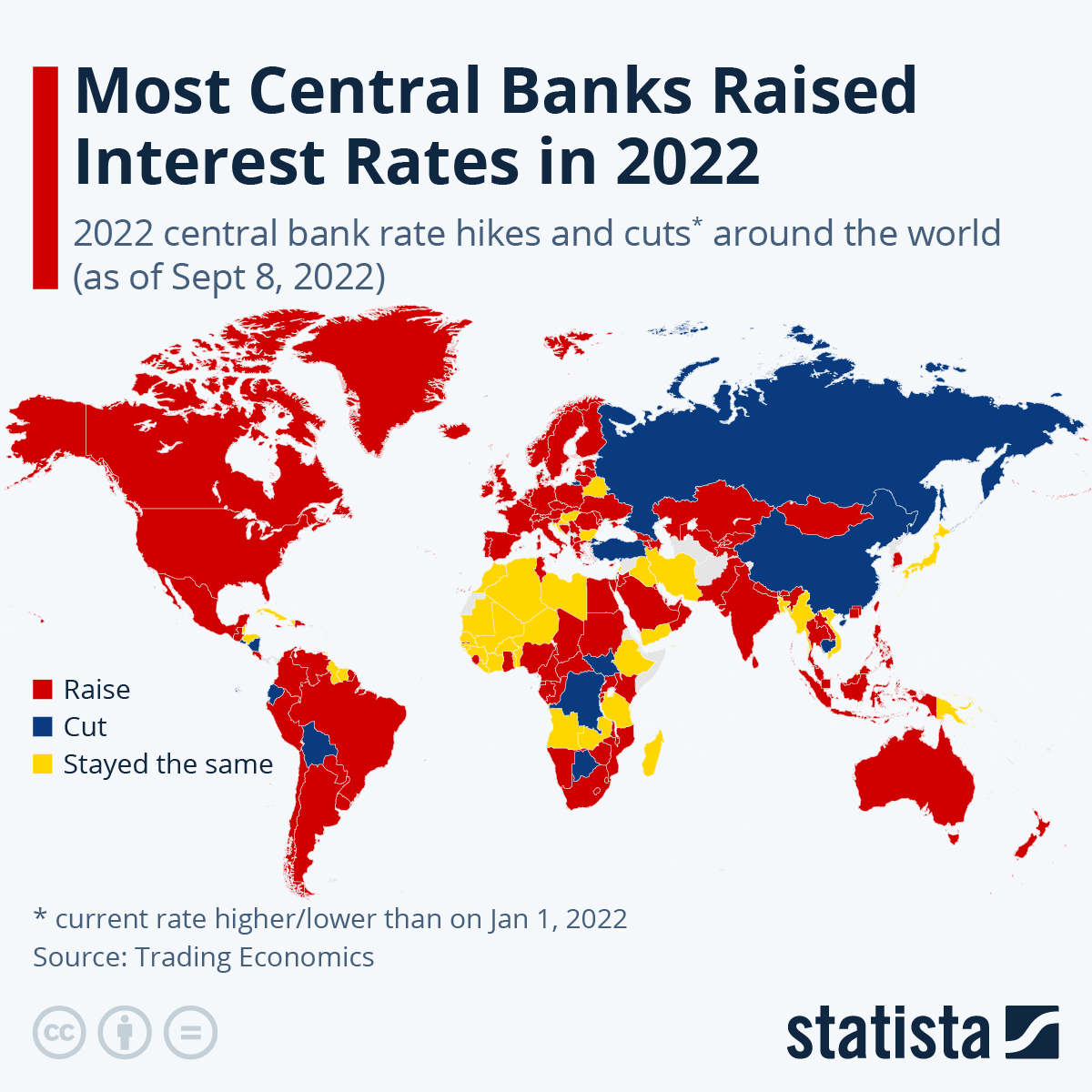 - In Europe, the European Central Bank made its largest-ever interest rate rise in September of this year.
