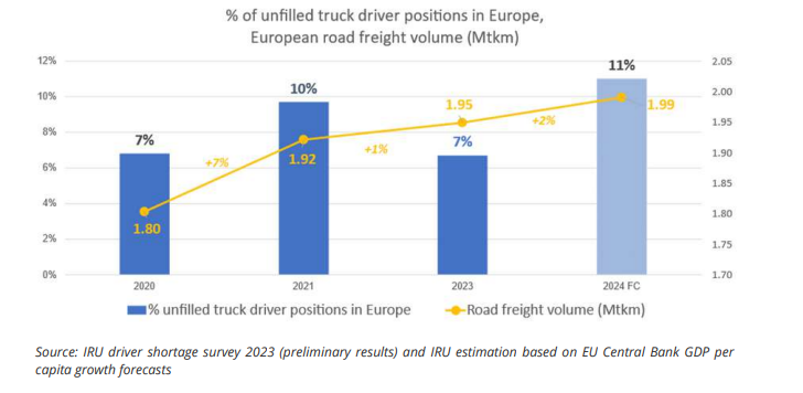 - Over one-third of truck drivers in Europe are currently over 55 years old and will retire in 5 to 10 years, while the number of new entrants joining the profession is insufficient to ensure the replacement of older ones. Less than 6% of truck drivers are below 25 years old in Europe.