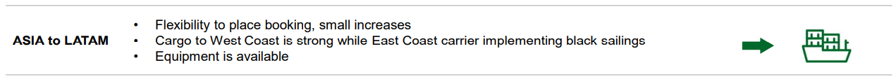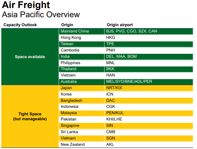 - Capacity from China, Hong Kong, and Southeast Asia also remains readily available, with sufficient supply to support current demand levels.