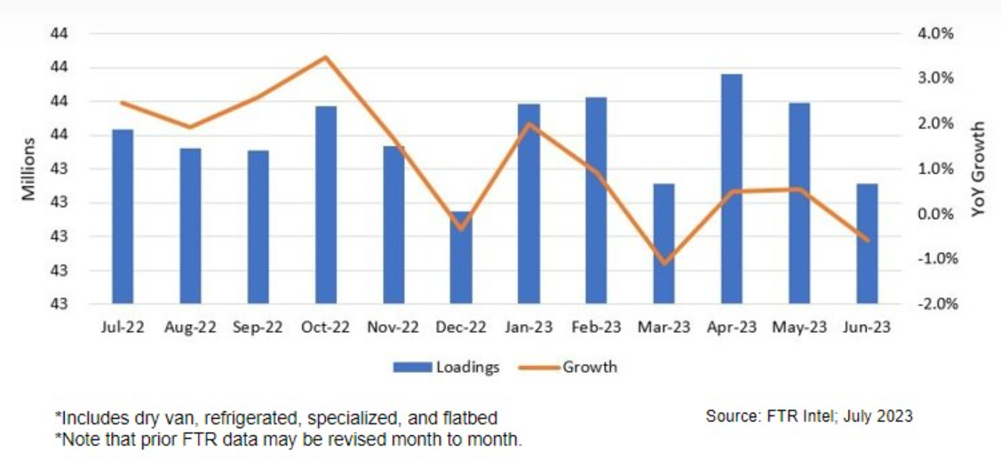 - In the United States, truck loadings declined in June relative to the previous two months, now resting just below the loadings observed during the same period in the prior year.