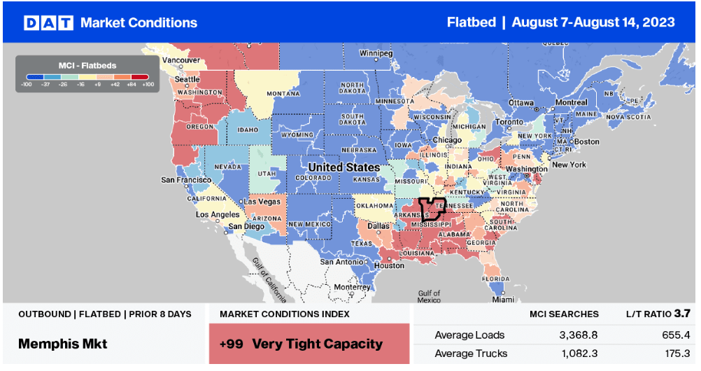 - Last week, carrier equipment posts remained relatively unchanged, resulting in a slight increase in the flatbed load-to-truck ratio (LTR) from 6.77 to 5.63.