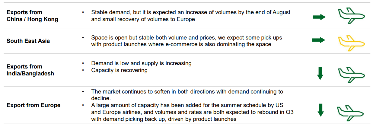 - Global air freight continues to experience weak demand, leading to soft market conditions.