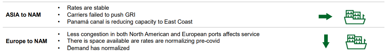 - Most trade lanes currently maintain sufficient capacity, without significant backlogs.