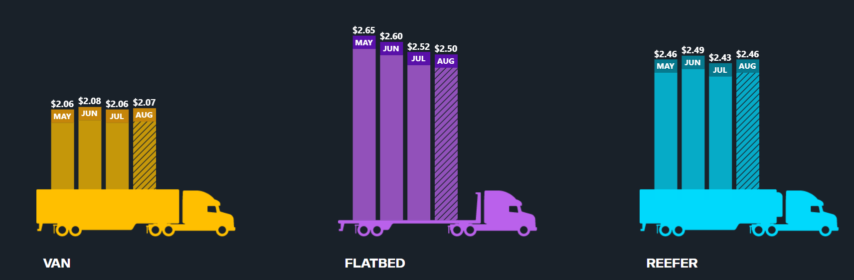 - Over the past month, flatbed spot market volumes have experienced a significant decline of 31%, with the most recent week showing a 16% decrease. This marks the lowest Week 32 recorded since 2016.