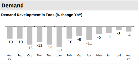 - Demand in this sector is experiencing softness, as the anticipated economic rebound following the lifting of COVID-19 restrictions in China did not reach the expected levels.