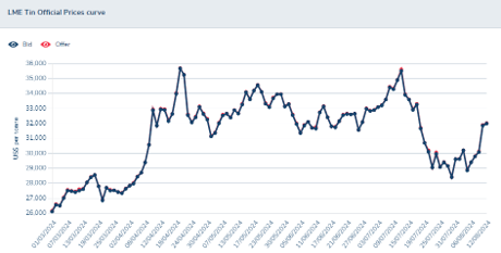High Global Demand: The demand for tin remains strong, driven by its crucial role in the electronics industry. However, supply is constrained because production is concentrated in just a few countries. Additionally, extracting tin is becoming more challenging due to depleting reserves and rising mining costs.