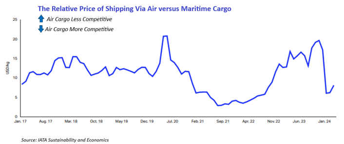 The persistently challenging Red Sea situation: Further adding to the expectations of higher rates throughout the year was the ongoing disruption to ocean shipping caused by Houthi militant attacks on commercial shipping in the Red Sea and Gulf of Aden. The longer ocean transits around Africa and congestion from an early peak season continue to force shippers of urgent cargo into the air. There are no indications that routes through the Red Sea will reopen soon. The regional security situation has deteriorated over the past few weeks; as a result, many expect higher prices leading up to the Chinese New Year.