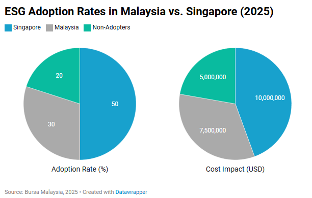 With $500B in electronics trade, Singapore faces similar ESG pressures but with different dynamics. While Malaysia’s Port Klang struggles with 80% on-time delivery, Singapore achieves 90%, reducing logistics risks by $5M/month, as noted in yesterday's blog post. However, Singapore’s piracy issues (27 incidents in 2025) add $20M in emissions costs, matching Malaysia’s ESG-driven rerouting costs. Singapore’s advanced infrastructure allows faster adoption of green technologies (e.g., 50% of firms using AI for emissions tracking), saving $10M annually, while Malaysia lags (30% adoption), increasing compliance costs by 15% ($7.5M). Malaysia’s focus on rural supplier networks offers ESG benefits (e.g., 20% lower emissions), but its enforcement gaps hinder progress.