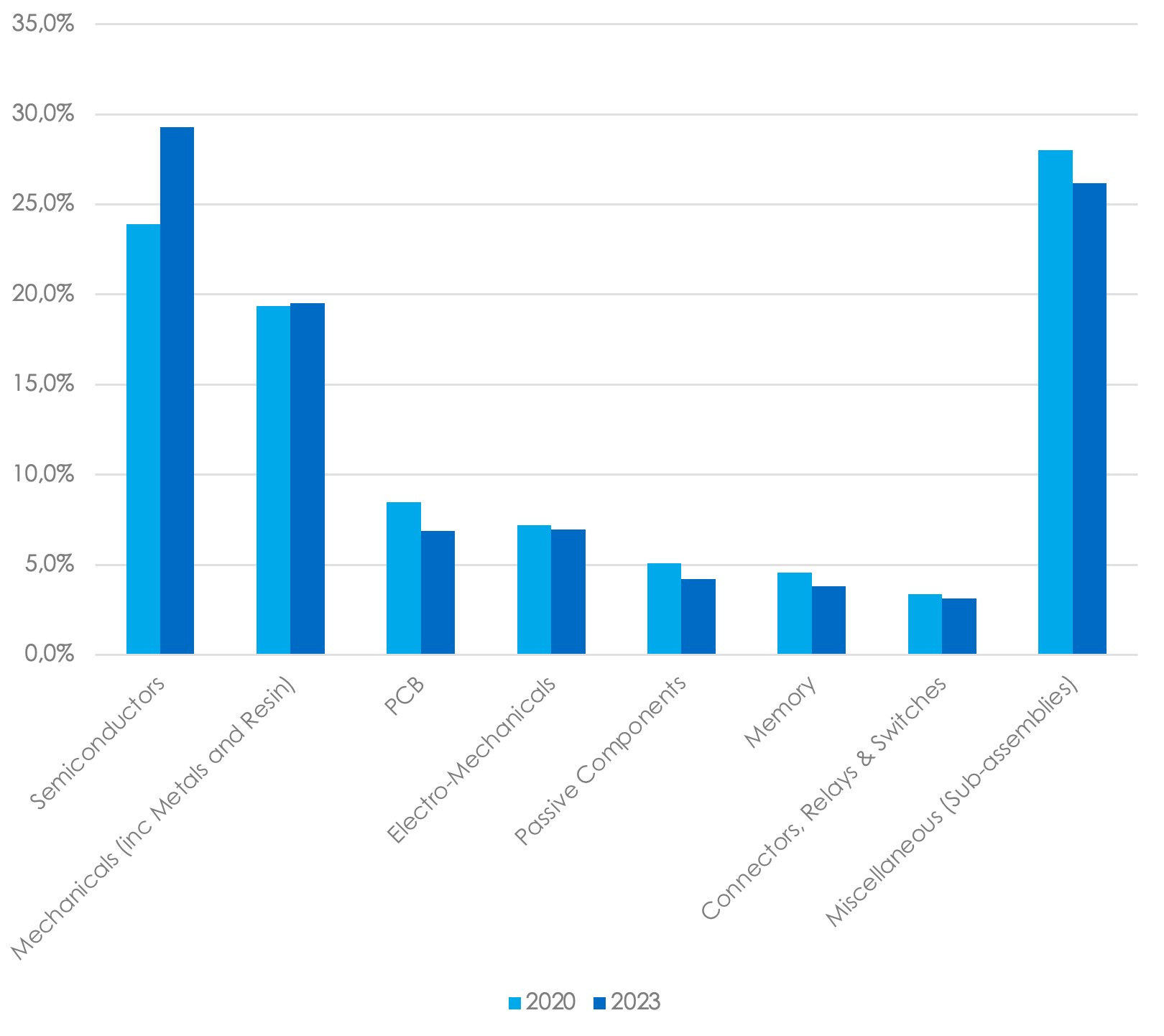 JABIL SPEND IN THE RETAIL SECTOR, BY CATEGORY (2020 VS 2023)