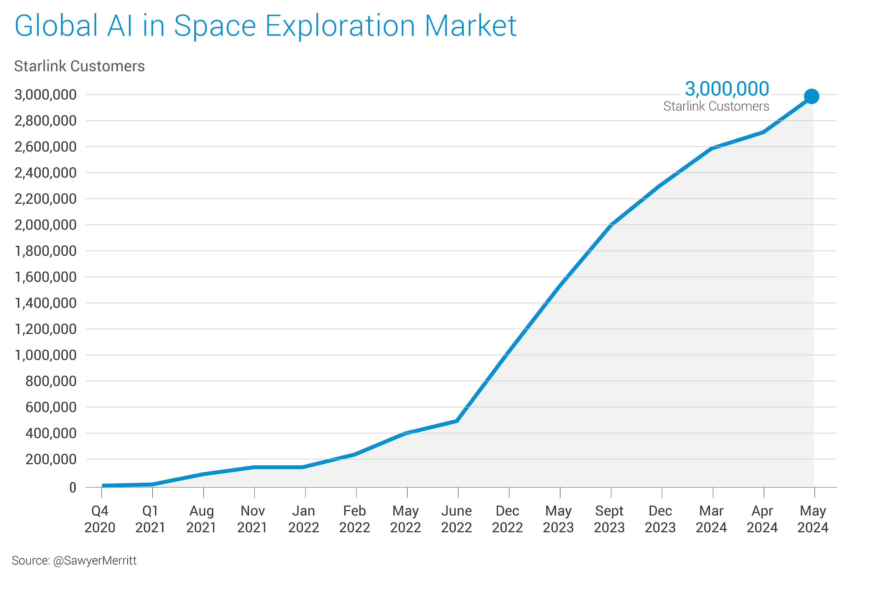 In May 2024, Starlink reached ~3 million customers in the Satellite Data Services business from more than 100 countries.