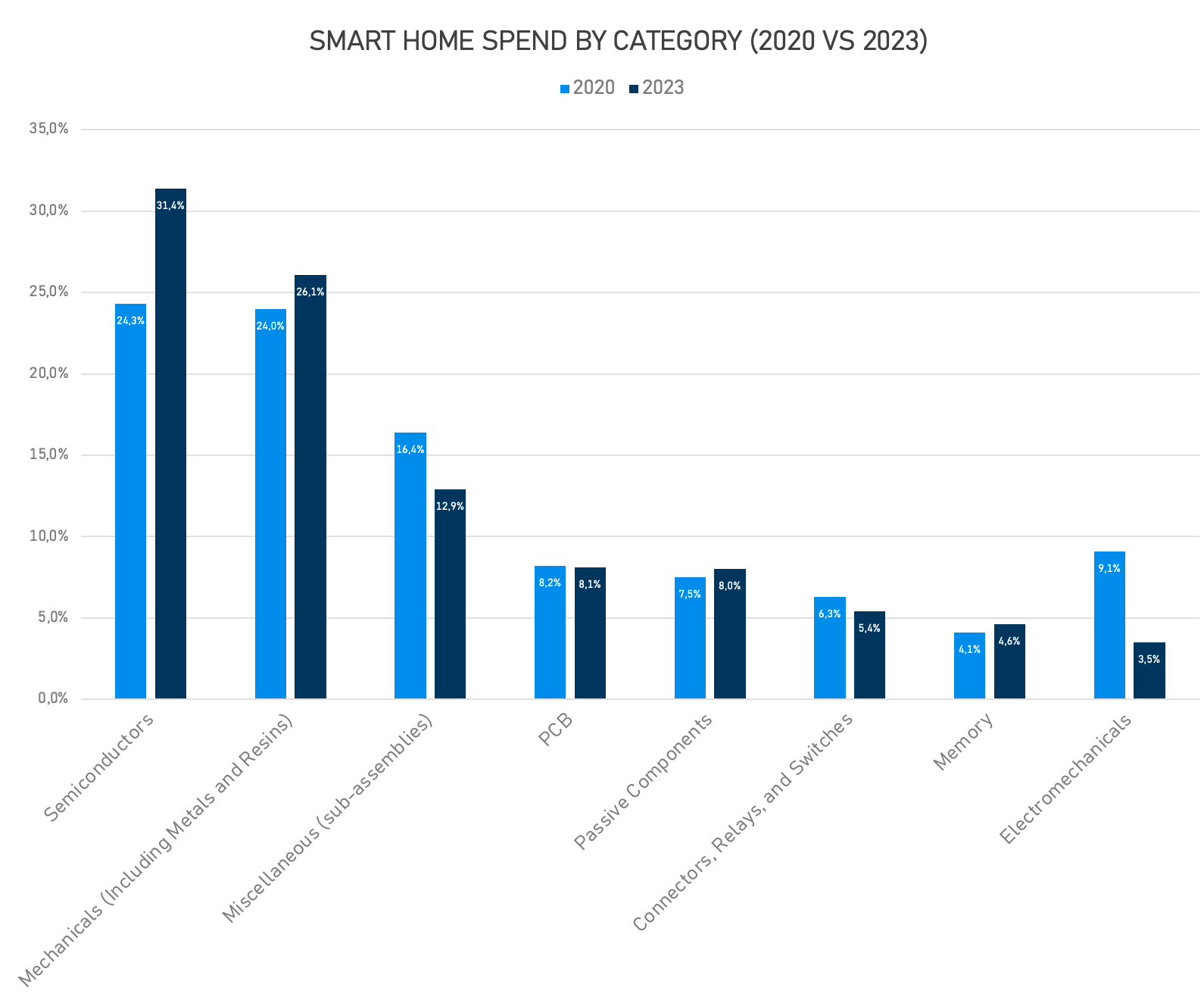 The spend (%) for Mechanical components has seen a notable dip in 2023, as compared to 2020. On the other hand, Electronics components such as semiconductor devices, PCBs, Memory, and other Miscellaneous Sub-assemblies have observed a slight growth in demand. This trend indicates the electrification of Smart Home infrastructure. Semiconductor devices are essential to smart homes, acting as the brains, senses, and communication links of various devices. They enable sensing (motion, temperature, etc.), processing (microcontrollers), and connectivity (Wi-Fi, Zigbee). Additionally, they manage power, create user interfaces, and secure the smart home network, showcasing their diverse roles in making homes intelligent and automated.