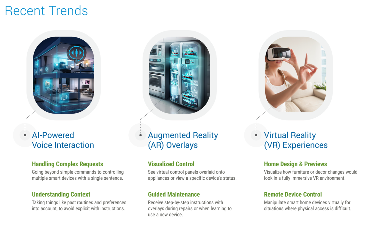 The smart home market is transforming dynamically, reshaping the domestic environment into interconnected, intelligent spaces. This evolution is not just about convenience; it represents a paradigm shift in interacting with living spaces, promising enhanced efficiency, comfort, and security. With the unprecedented growth in AI technologies, at-home voice assistants are poised to transform smart homes into intelligent environments that get more personal with consumers and reflect emotions while learning home and consumer habits.
