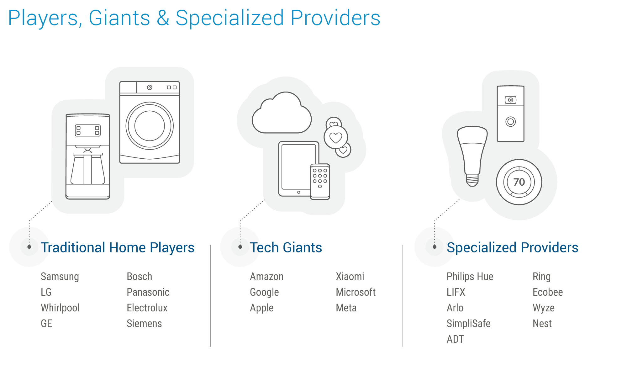 The smart home market is characterized by a dynamic and competitive landscape, with various players from different sectors innovating and contending for dominance. This landscape can be broadly categorized into three segments: traditional home players, tech giants, and specialized providers.