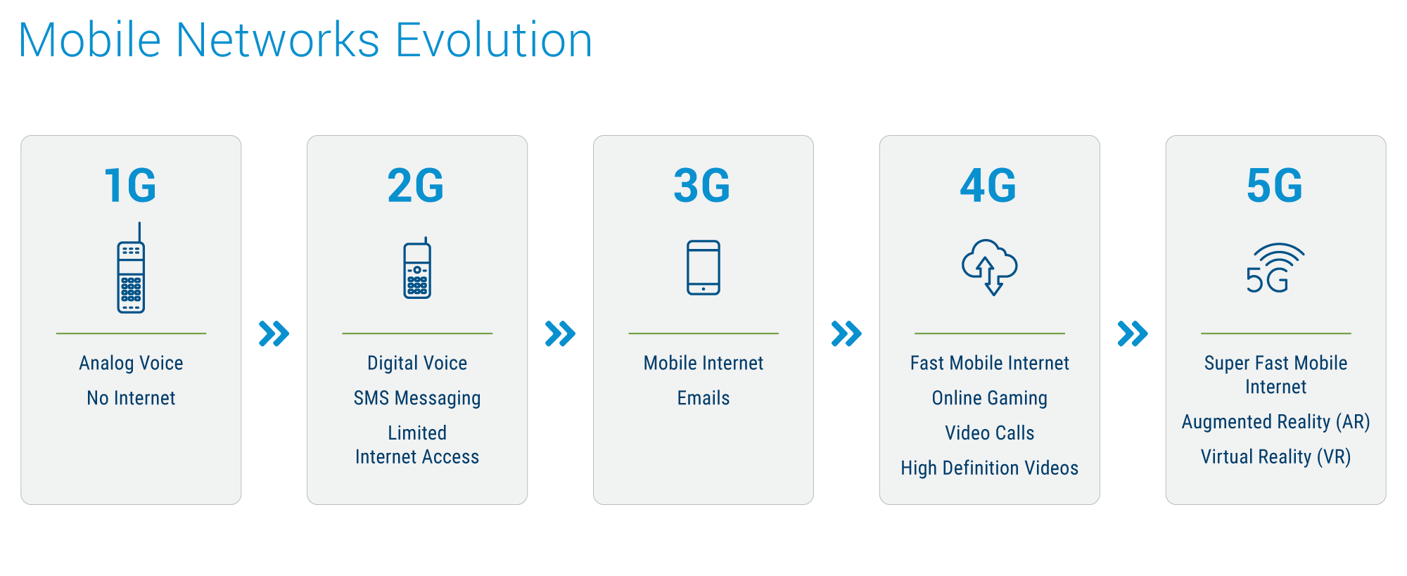 Evolution of 1G to 5G