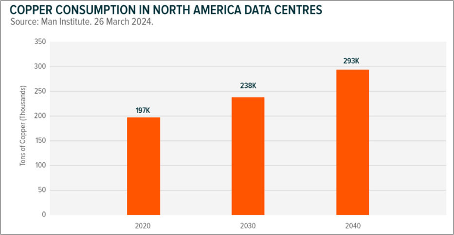 - For instance, AI models’ insatiable appetite for data processing and training has fueled the construction of massive hyper-scale data centers. These data centers require extensive copper cabling for power distribution, networking, and connecting servers, switches, and storage devices.