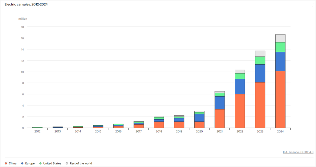 - Global electric car sales surged 25% year-on-year in the first quarter of 2024, surpassing 3 million units, according to the International Energy Agency (IEA). This momentum is evident in China, where EV sales climbed 31% in July to reach 0.88 million units, representing over two-thirds of global sales that month, as reported by Rho Motion.